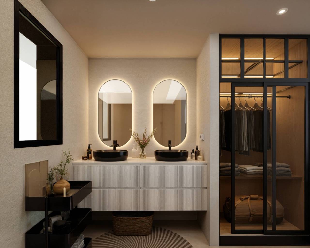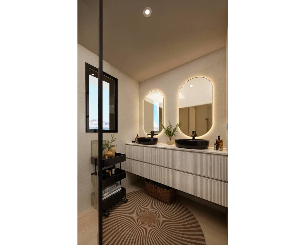 El interior de las viviendas está pensado para ofrecer la máxima comodidad y funcionalidad. Los suelos de gres porcelánico aportan un toque moderno y son fáciles de mantener. La inclusión de electrodomésticos y armarios empotrados facilita la organización y el aprovechamiento del espacio. El videoportero añade un nivel extra de seguridad y comodidad. La preinstalación de aire acondicionado permite climatizar las viviendas de manera eficiente. Las opciones de distribución incluyen 2 o 3 dormitorios y 2 baños, adaptándose a diferentes estilos de vida y necesidades familiares. La presencia de terrazas y, en algunos casos, solárium, amplía las posibilidades de uso del espacio interior y exterior.