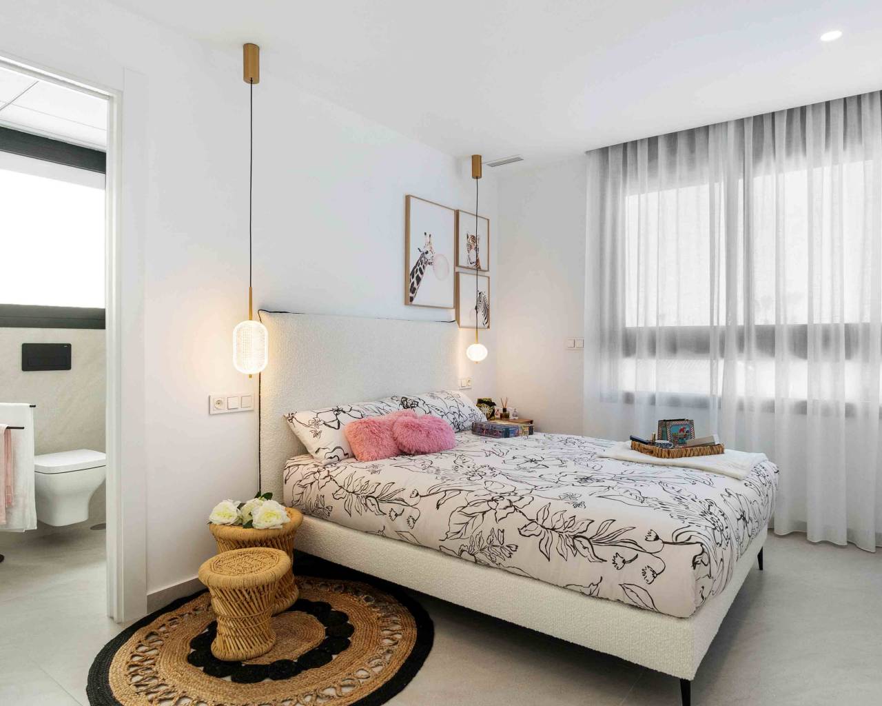 El interior de estos chalets independientes en Rojales está pensado para ofrecer el máximo confort y funcionalidad. Con tres dormitorios y tres baños, cada vivienda está equipada para satisfacer las necesidades de cualquier familia. La cocina viene completamente amueblada y equipada con electrodomésticos modernos, facilitando la vida diaria. El suelo cerámico aporta un toque de elegancia y es fácil de mantener. Las viviendas cuentan con aire acondicionado y calefacción por suelo radiante, garantizando una temperatura agradable durante todo el año. Los armarios empotrados ofrecen un almacenamiento eficiente, mientras que las persianas eléctricas y el videoportero añaden un nivel extra de comodidad y seguridad. Además, cada propiedad está preparada para la instalación de un cargador para coches eléctricos, subrayando el compromiso con la sostenibilidad.