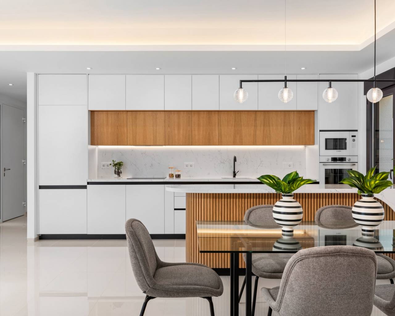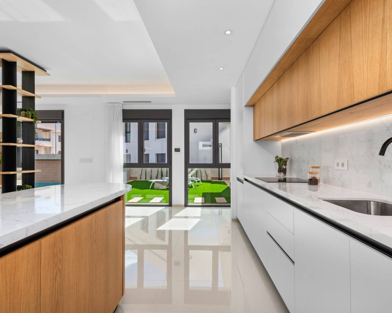 El interior de la vivienda está diseñado para maximizar el confort y la funcionalidad. Con tres dormitorios, la propiedad ofrece suficiente espacio para acomodar a una familia o recibir invitados. Los armarios empotrados en los dormitorios proporcionan un almacenamiento eficiente, manteniendo los espacios ordenados y libres de desorden. La vivienda cuenta con dos baños, lo que garantiza comodidad y privacidad para todos los residentes. El suelo de gres porcelánico añade un toque de elegancia y es fácil de mantener, ideal para el día a día. Además, la propiedad incluye un solárium, un espacio adicional que puede ser utilizado como área de descanso o para disfrutar de las vistas.
