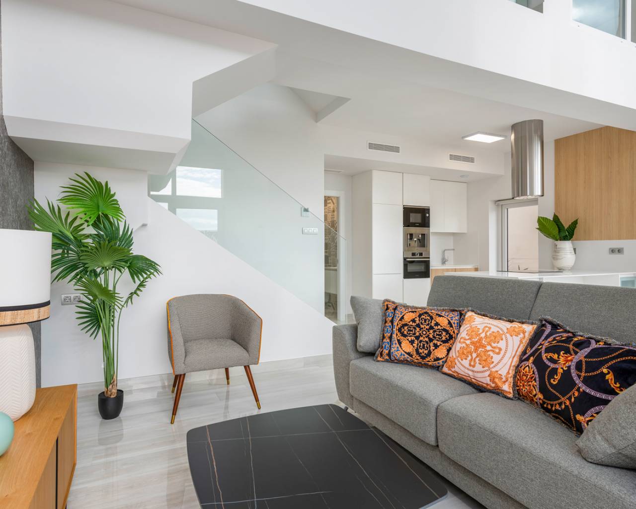 El diseño exterior de estas propiedades independientes en Ciudad Quesada está pensado para maximizar el disfrute del clima mediterráneo. Cada vivienda cuenta con un jardín privado, perfecto para relajarse o disfrutar de actividades al aire libre. Además, disponen de una terraza y un solárium, ideales para tomar el sol y disfrutar de las vistas al mar. La presencia de una piscina privada añade un toque de lujo, permitiendo refrescarse en los días más calurosos. Las propiedades también incluyen una pérgola, que proporciona un espacio sombreado para disfrutar de comidas al aire libre o simplemente relajarse.