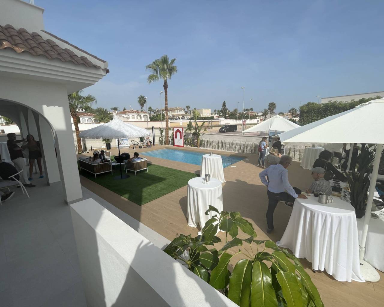 El exterior de esta propiedad independiente en Ciudad Quesada está diseñado para disfrutar al máximo del clima mediterráneo. La presencia de una piscina privada es un verdadero lujo, permitiendo refrescantes baños en la intimidad de tu hogar. Además, el jardín ofrece un espacio verde donde relajarse o disfrutar de actividades al aire libre. La terraza es un lugar perfecto para cenar al aire libre o simplemente disfrutar de las vistas. La pérgola proporciona sombra y un toque estético adicional, creando un ambiente acogedor para reuniones familiares o con amigos. El solárium es otro punto destacado, ofreciendo un espacio adicional para tomar el sol o disfrutar de las vistas panorámicas.