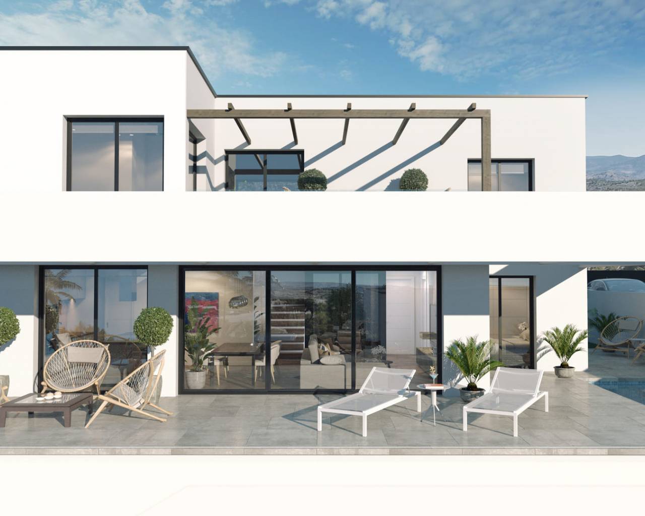 Los exteriores de estas viviendas independientes en Finestrat están diseñados para ofrecer un espacio de relax y disfrute al aire libre. Cada propiedad cuenta con un jardín privado, ideal para crear un oasis personal de tranquilidad. Además, las terrazas amplias permiten disfrutar de las vistas al mar y del clima mediterráneo durante todo el año. La presencia de una pérgola añade un toque de elegancia y funcionalidad, proporcionando sombra y un espacio adicional para el entretenimiento al aire libre. La inclusión de una piscina privada en cada vivienda asegura momentos de ocio y diversión en la comodidad del hogar.