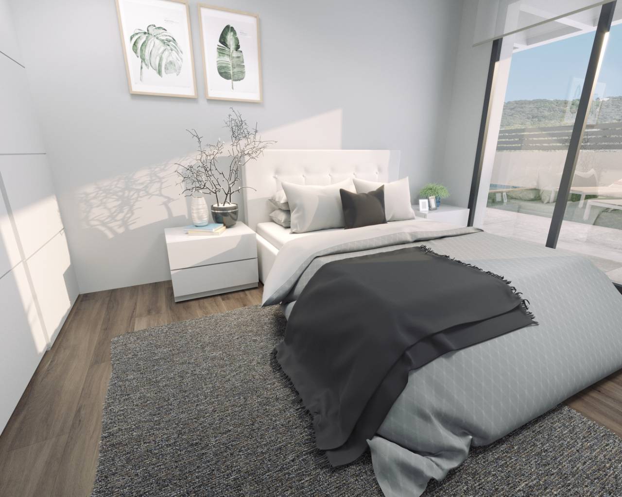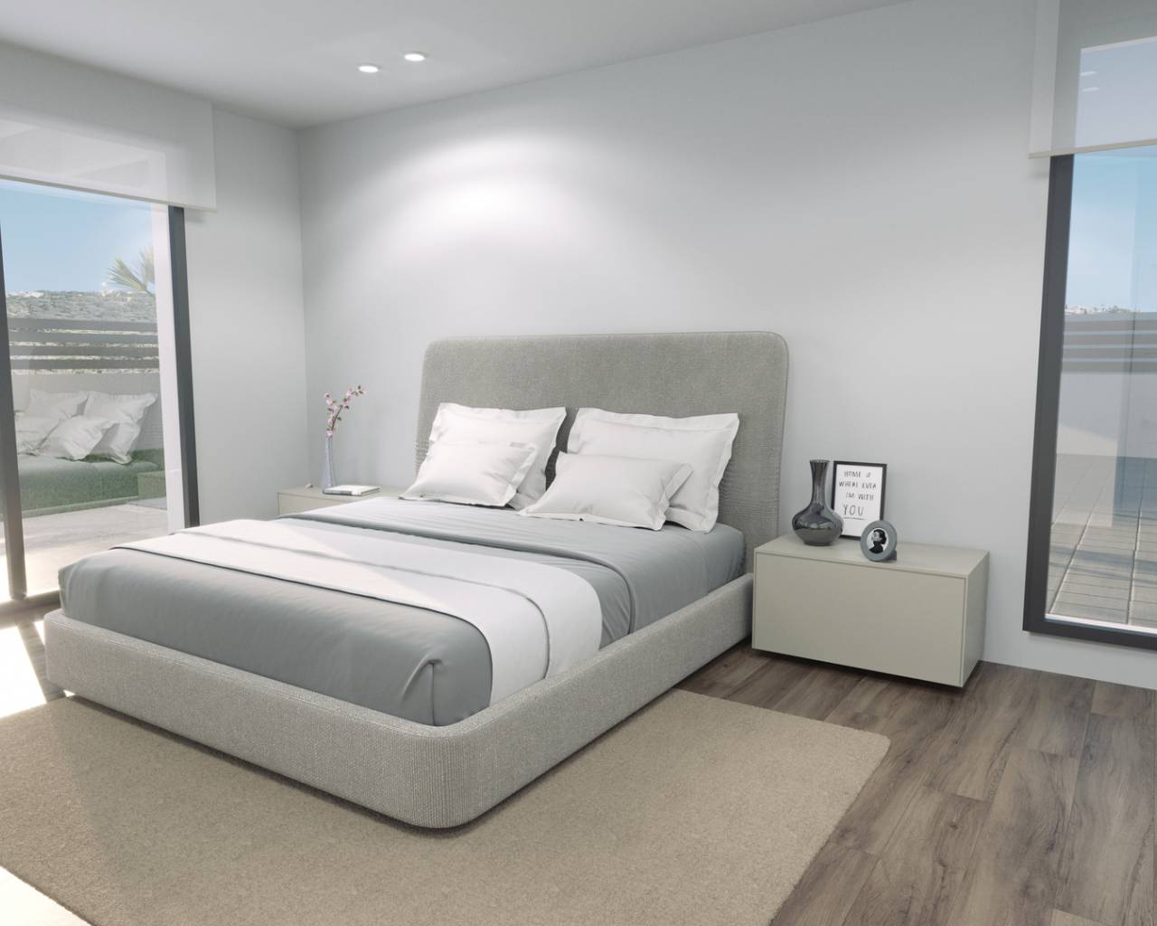 El interior de estas viviendas independientes en Finestrat está pensado para ofrecer el máximo confort y funcionalidad. Con opciones de 3 dormitorios y 2 o 3 baños, cada hogar está diseñado para adaptarse a las necesidades de sus residentes. Los suelos de gres porcelánico aportan un toque de modernidad y son fáciles de mantener. Las cocinas están equipadas con electrodomésticos de alta calidad, facilitando el día a día. Los armarios empotrados proporcionan un espacio de almacenamiento eficiente, manteniendo el orden y la estética del hogar. Además, cada vivienda cuenta con un garaje, asegurando comodidad y seguridad para los vehículos.