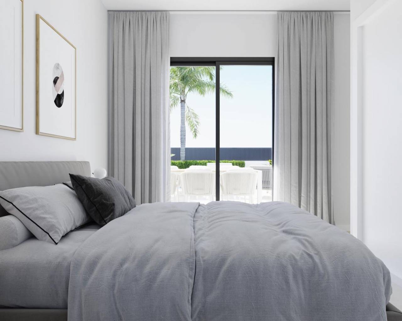 Las propiedades cuentan con espacios exteriores que invitan a disfrutar del clima mediterráneo. Cada vivienda dispone de una terraza, ideal para relajarse al aire libre y disfrutar de las vistas. Además, algunas tipologías incluyen un solárium, proporcionando un espacio adicional para el ocio y el descanso. Los jardines privados son una característica destacada, ofreciendo un rincón verde personal para cada residente. Para aquellos que buscan un toque de lujo, algunas propiedades cuentan con piscina privada, perfecta para refrescarse en los días calurosos. La presencia de persianas eléctricas añade un nivel de comodidad y modernidad a las viviendas, permitiendo un control fácil de la luz y la privacidad.