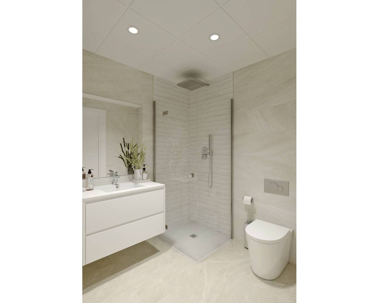El interior de estas propiedades ha sido diseñado con un enfoque en la calidad y el confort. Los apartamentos, plantas bajas y áticos ofrecen opciones de 2 o 3 dormitorios y 1 o 2 baños, adaptándose a diferentes necesidades familiares. Los suelos de gres porcelánico aportan un toque de elegancia y durabilidad, mientras que las persianas eléctricas y el videoportero añaden un nivel adicional de comodidad y seguridad. Los armarios empotrados ofrecen un almacenamiento eficiente, y la calefacción por suelo radiante asegura un ambiente cálido durante los meses más fríos. Cada detalle ha sido pensado para proporcionar un hogar acogedor y funcional.