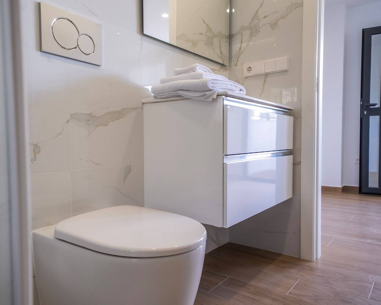 El interior de las viviendas está diseñado para ofrecer el máximo confort y estilo. Los chalets están completamente amueblados, lo que facilita la mudanza y permite disfrutar de un hogar listo para habitar. El suelo de gres porcelánico aporta un toque moderno y es fácil de mantener. Las propiedades cuentan con aire acondicionado, garantizando un ambiente agradable durante todo el año. Los electrodomésticos están incluidos, y los armarios empotrados ofrecen un almacenamiento eficiente. La distribución incluye opciones de 3, 4 o 6 dormitorios y 2 o 4 baños, adaptándose a diferentes necesidades familiares. Además, cada vivienda dispone de un garaje, proporcionando comodidad y seguridad para los vehículos.