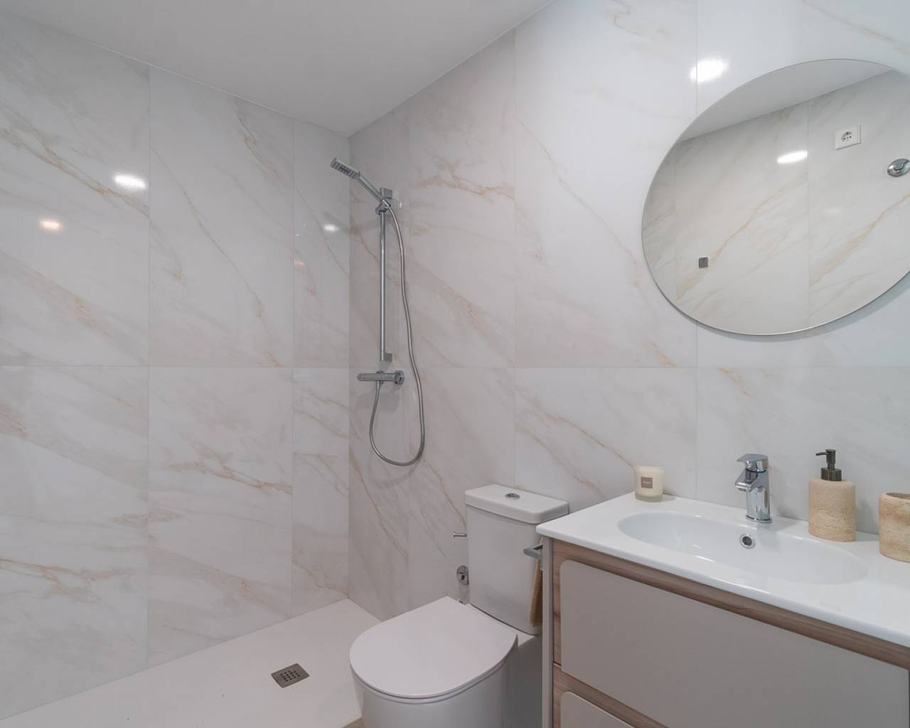 El interior de las viviendas está pensado para ofrecer un espacio acogedor y funcional. Las opciones de distribución incluyen viviendas de 2, 3 y 4 dormitorios, con 2 o 3 baños, adaptándose a las necesidades de familias de diferentes tamaños. Cada unidad está equipada con electrodomésticos modernos y cuenta con armarios empotrados que optimizan el espacio de almacenamiento. La preinstalación de aire acondicionado asegura un ambiente agradable durante todo el año. Los suelos de cerámica y gres porcelánico no solo aportan un toque de elegancia, sino que también son fáciles de mantener, garantizando durabilidad y estética.