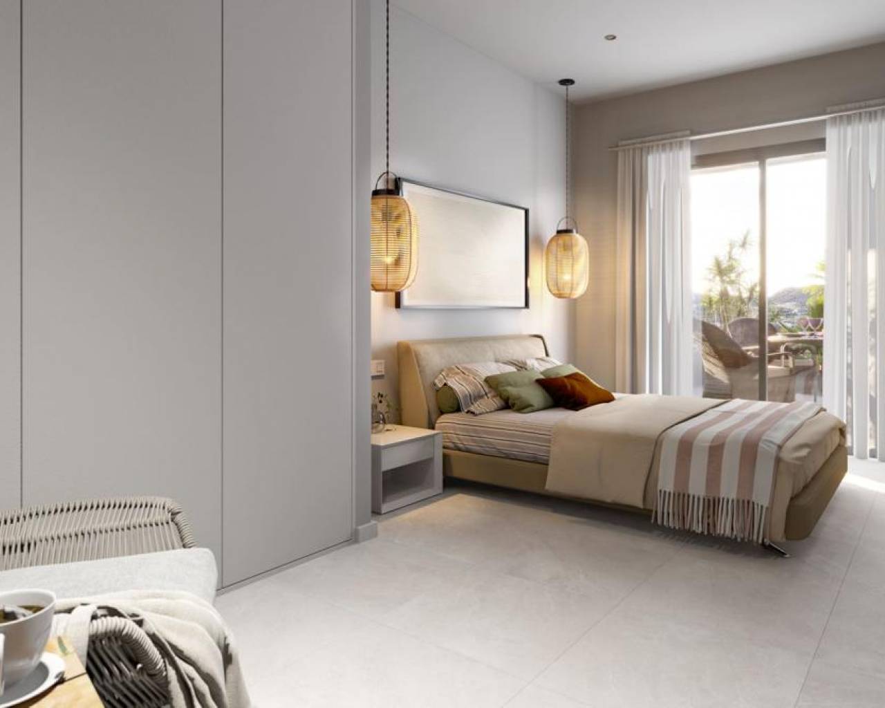El interior de las villas está diseñado para ofrecer el máximo confort y funcionalidad. Los suelos de gres porcelánico aportan un toque de elegancia y son fáciles de mantener. Las villas están equipadas con electrodomésticos modernos y un sistema de domótica que facilita la gestión del hogar. Las persianas eléctricas y los armarios empotrados son características estándar que añaden comodidad y eficiencia. El diseño de las villas incluye un garaje privado, asegurando espacio suficiente para el estacionamiento y almacenamiento. Cada detalle está pensado para ofrecer una experiencia de vida de alta calidad.