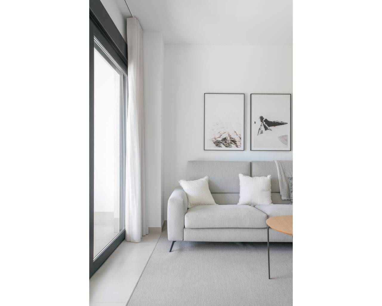 El entorno exterior de este residencial en Torrevieja está cuidadosamente diseñado para ofrecer un estilo de vida relajado y en contacto con la naturaleza. Las viviendas cuentan con terrazas y jardines privados, ideales para disfrutar del clima mediterráneo. Los áticos disponen de solárium, proporcionando un espacio adicional para el ocio al aire libre y la contemplación de las vistas al mar. La comunidad también ofrece un garaje comunitario, asegurando comodidad y seguridad para los vehículos de los residentes.