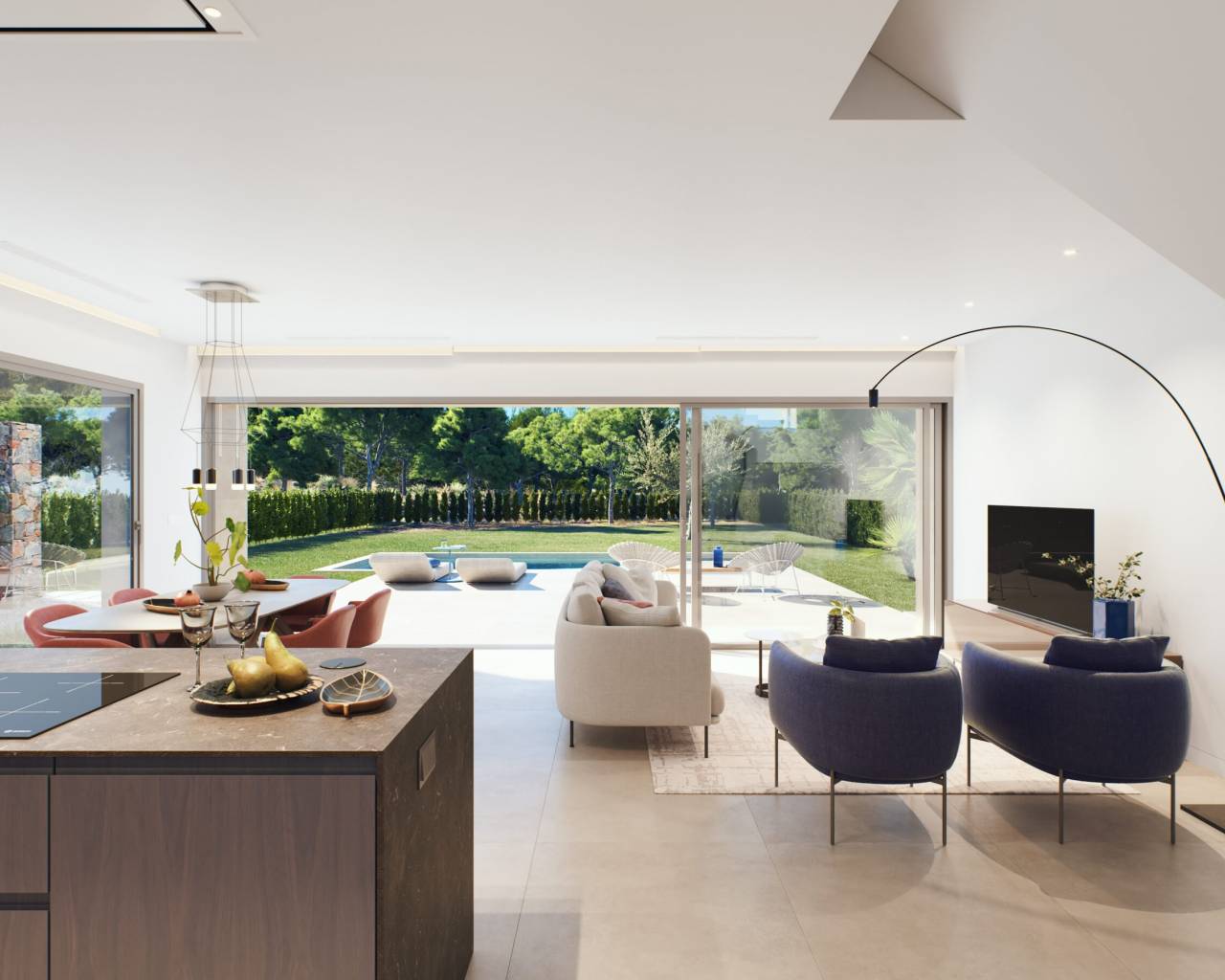 The properties feature outdoor spaces designed to maximize enjoyment of the Mediterranean climate. Each home has a private garden, perfect for creating a personal oasis of relaxation. Additionally, the terraces offer extra space to enjoy outdoor dining or simply relax at the end of the day. The inclusion of a private pool in each property adds a touch of luxury, allowing residents to enjoy a refreshing dip in the comfort of their home. These outdoor spaces are designed to offer privacy and comfort, becoming the perfect place to enjoy unforgettable moments with family and friends.
