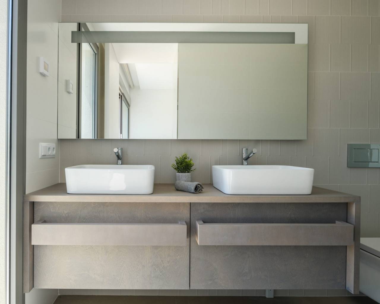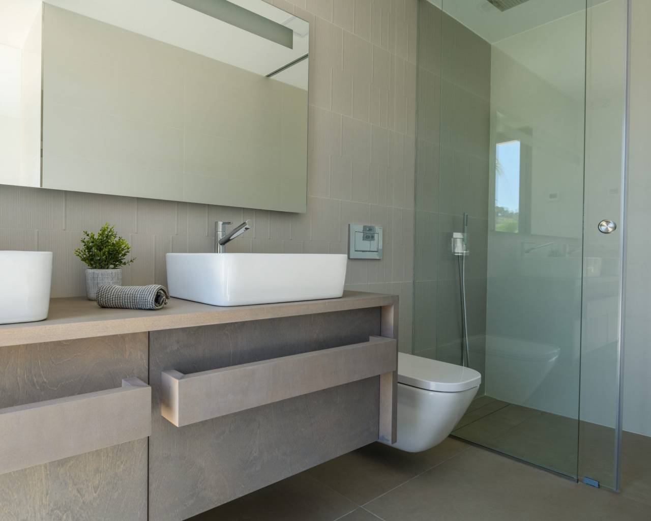 The interior of the homes is designed to offer a cozy and modern atmosphere. Each property features three bedrooms and three bathrooms, providing a spacious and functional space for the whole family. High-quality finishes include porcelain stoneware floors, which add an elegant touch and are easy to maintain. The homes are fully furnished and equipped with appliances, ensuring every detail is taken care of to offer maximum comfort. Technology also plays an important role, with features such as home automation, air conditioning, underfloor heating, video intercom, and electric shutters, guaranteeing a modern and efficient lifestyle. Built-in wardrobes offer practical and stylish storage solutions, completing an interior design that combines functionality and style.