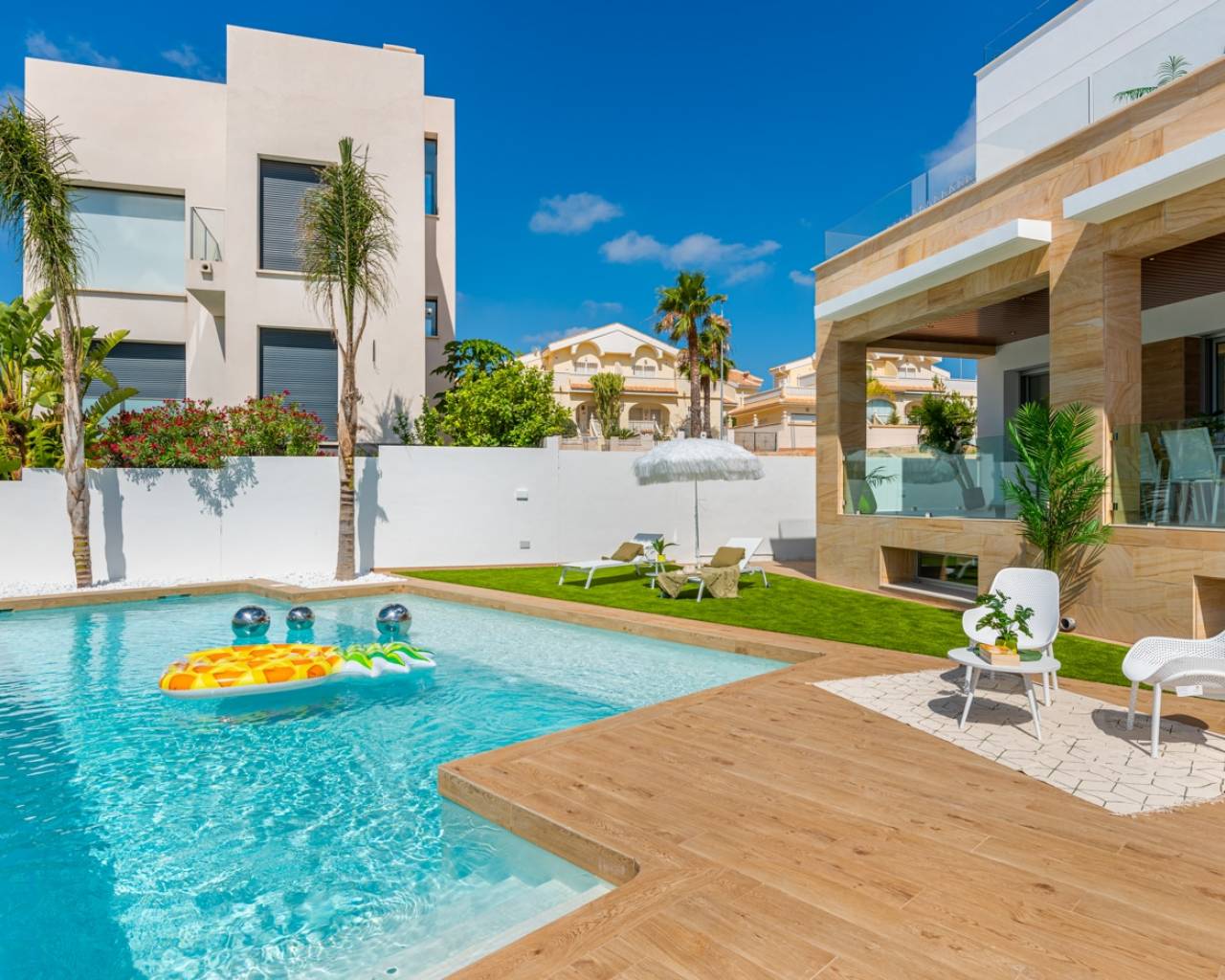 The exterior of these homes is a true oasis of relaxation. Each property features a private garden, perfect for enjoying the Mediterranean climate. The presence of a private pool adds a touch of luxury, allowing for a refreshing dip on the hottest days. Additionally, the terraces and solarium offer additional outdoor leisure spaces, ideal for family gatherings or simply enjoying a moment of tranquility. The pergola provides shade and a cozy spot to rest during the intense sun hours.