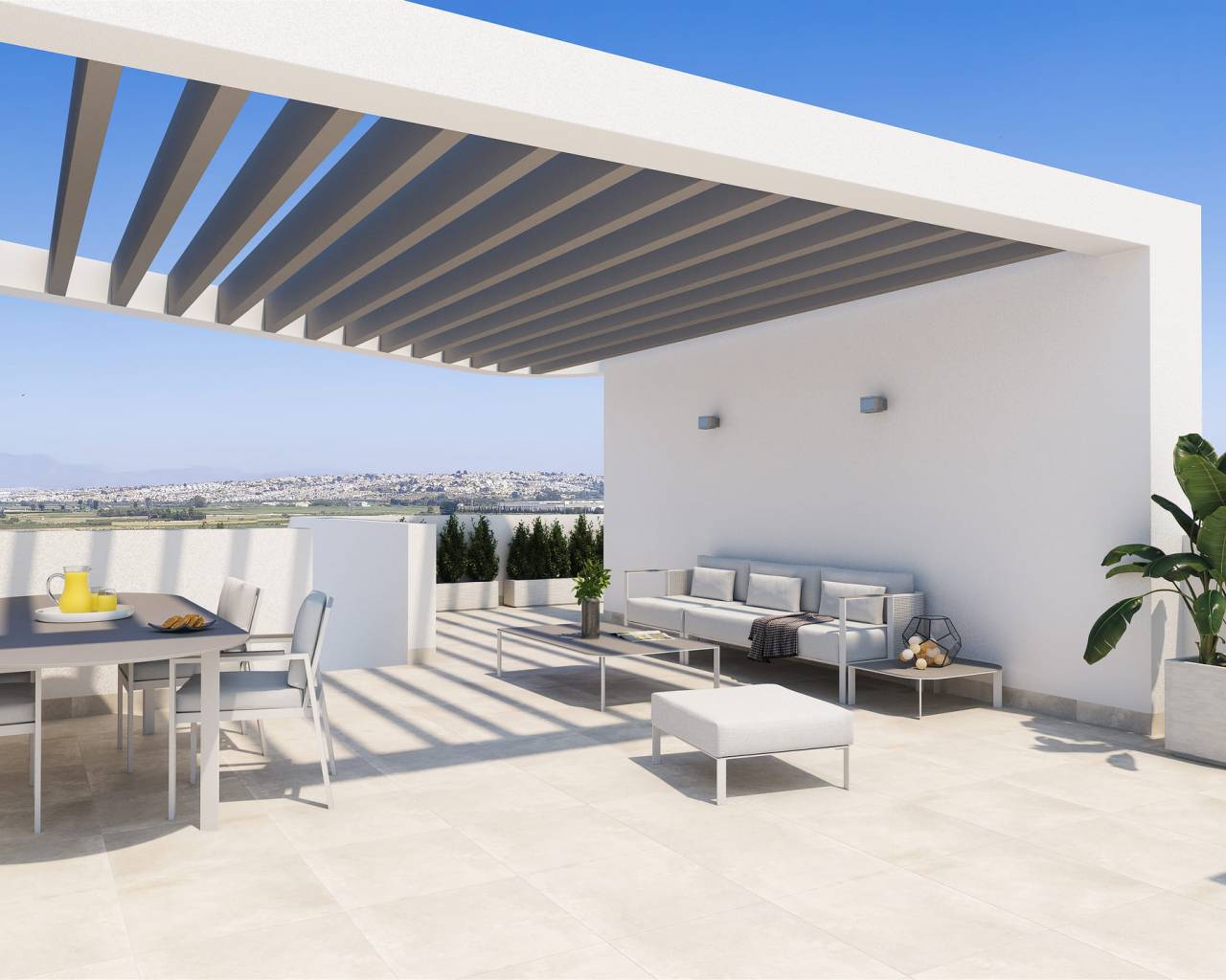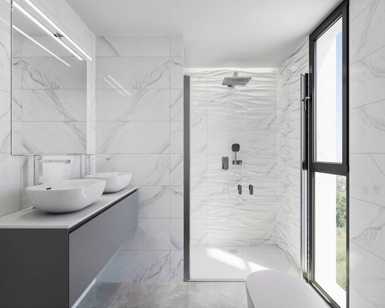 The exteriors of these properties are designed to maximize enjoyment of the natural surroundings. All properties feature terraces, perfect for relaxing outdoors and enjoying the region's sunny weather. Additionally, some types include private gardens, offering extra space for outdoor activities or simply enjoying a personal oasis. The penthouses, on the other hand, have solariums, providing an exclusive space for sunbathing with complete privacy.