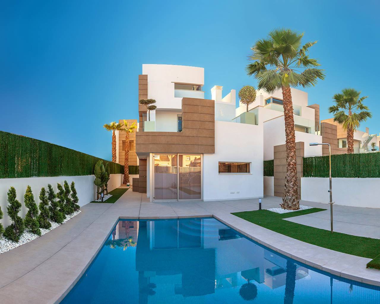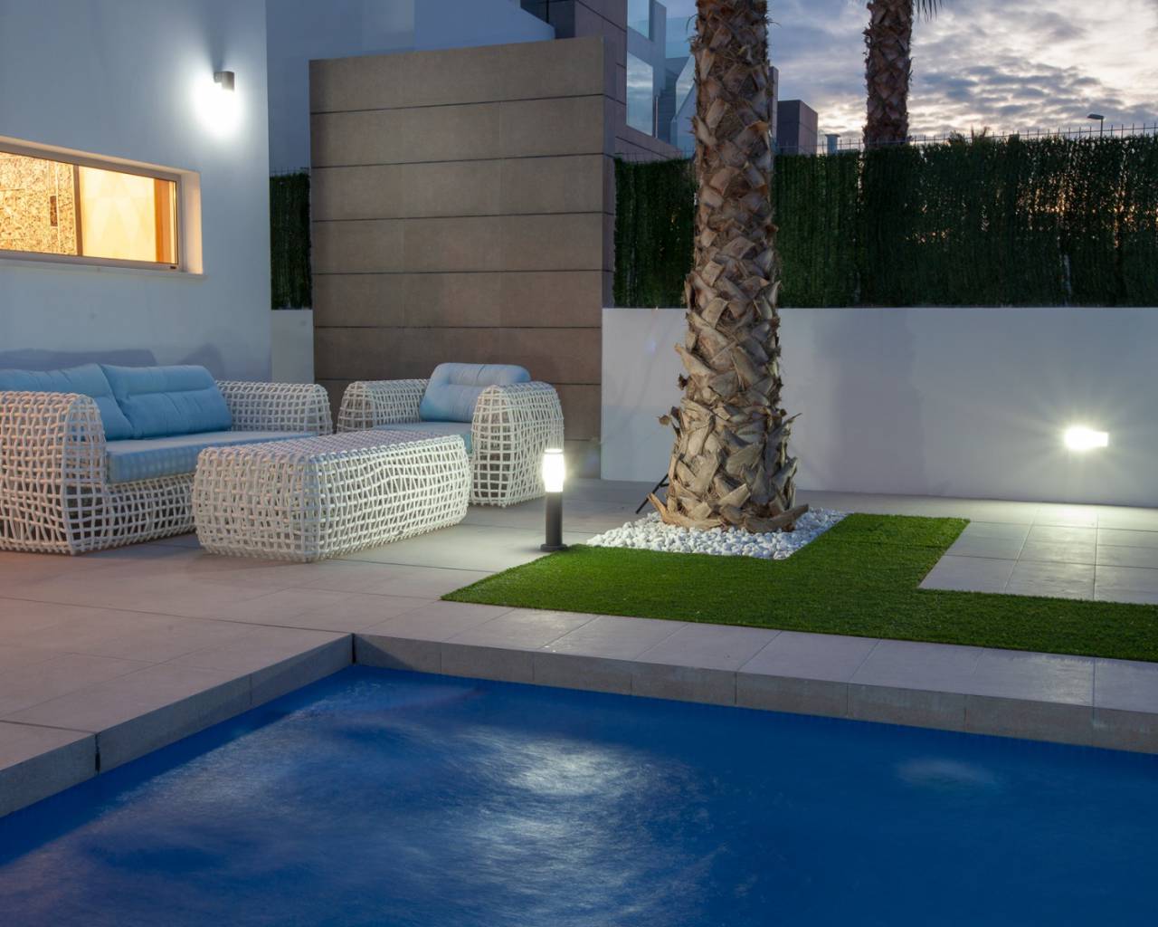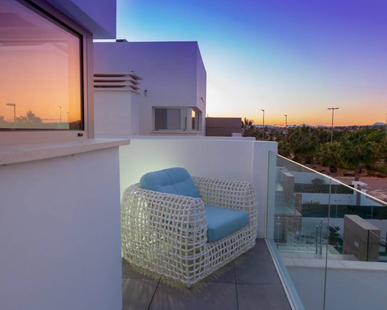 Все виллы имеют собственный участок земли — от 160 до 312 м2, с садом и бассейном 6х3 м; террасу и солярий, с которых открываются панорамные виды на Лагуну и апельсиновые рощи.