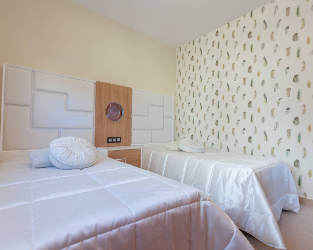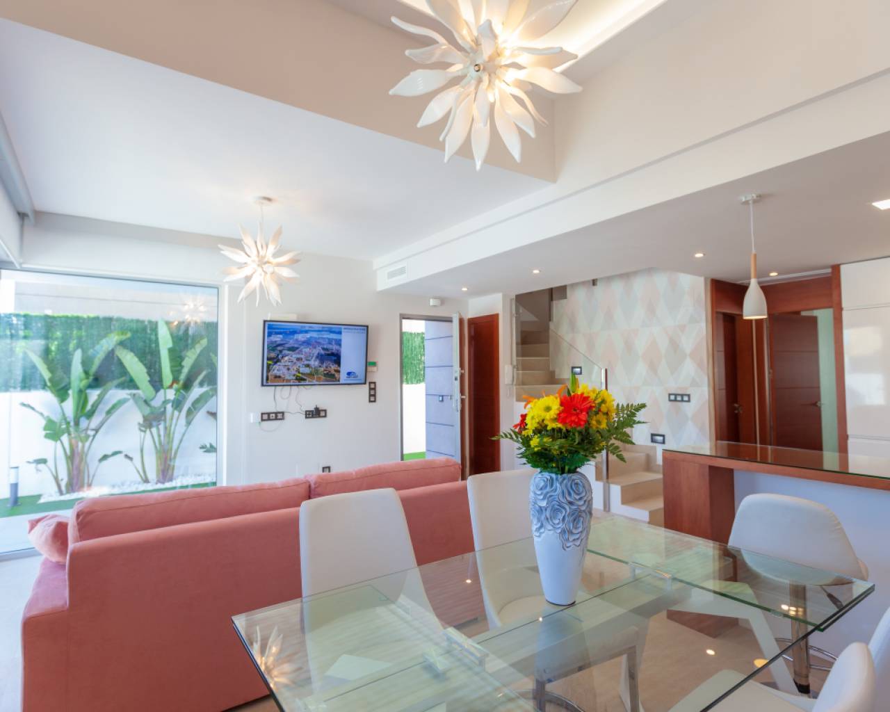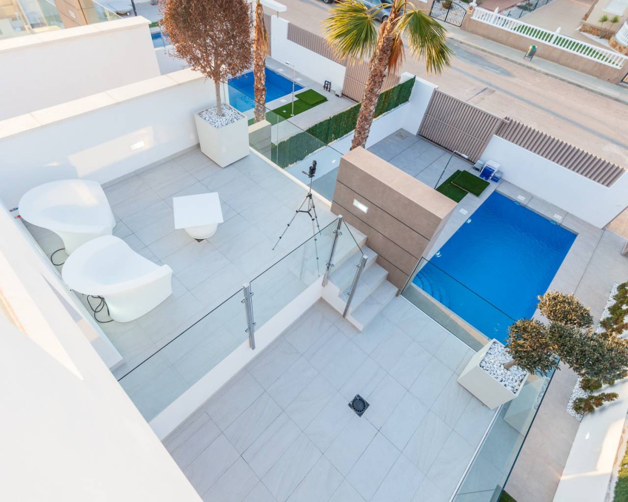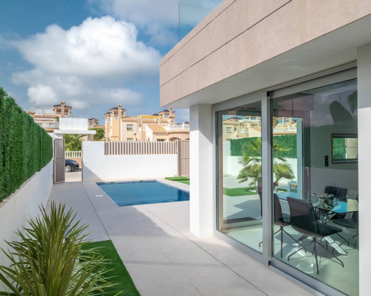 Все виллы имеют собственный участок земли — от 160 до 312 м2, с садом и бассейном 6х3 м; террасу и солярий, с которых открываются панорамные виды на Лагуну и апельсиновые рощи.