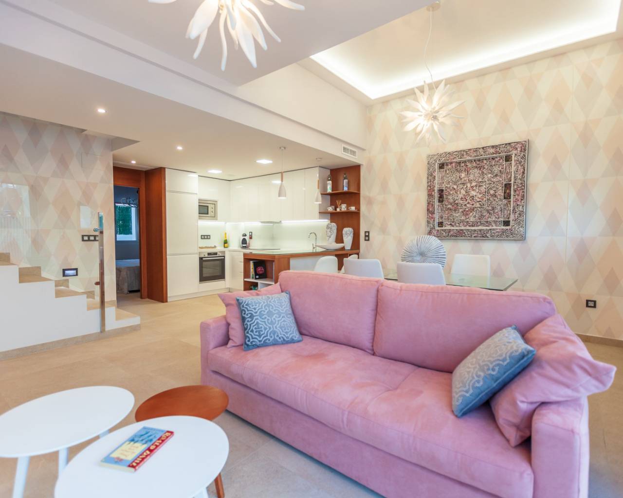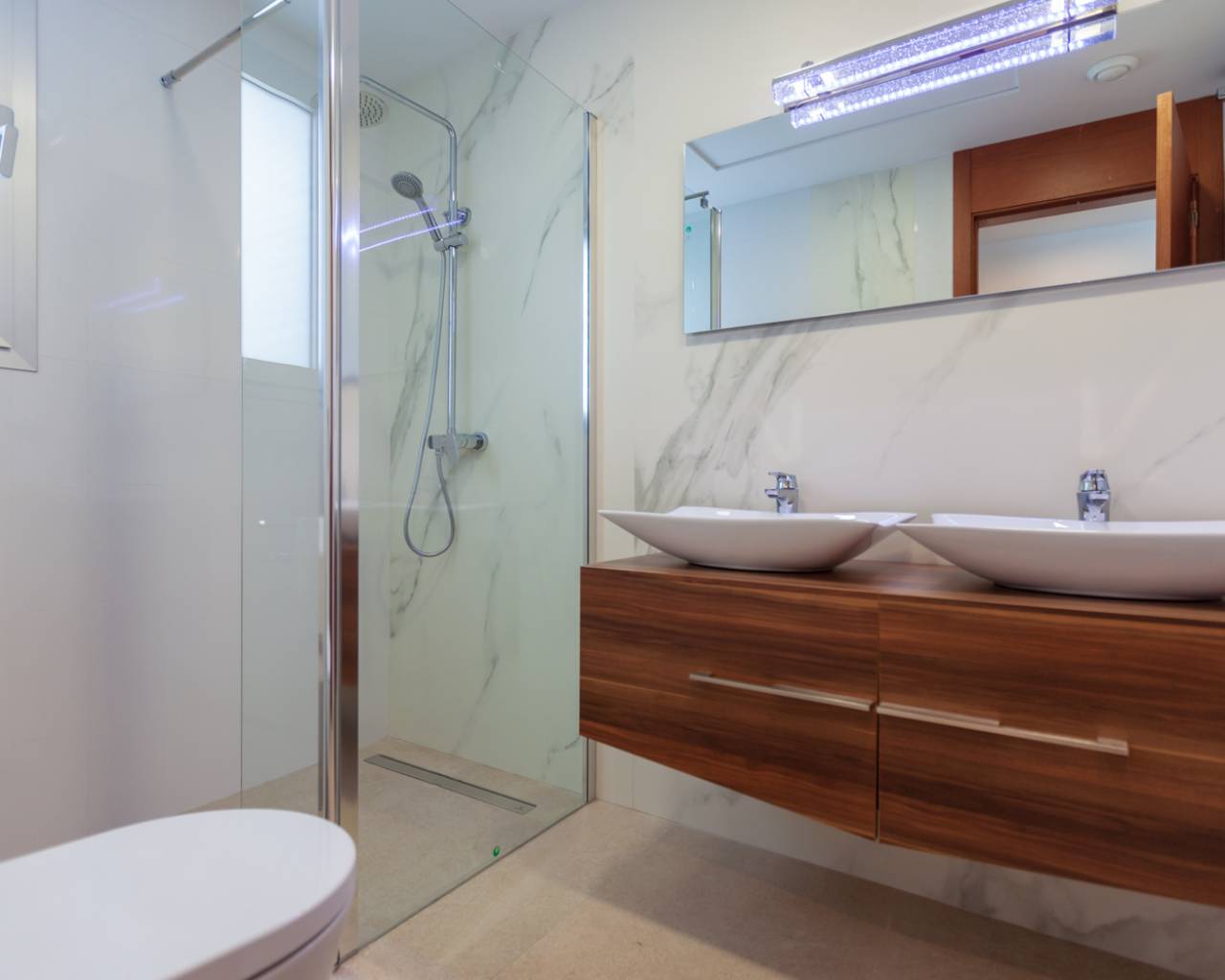 Даже базовый вариант комплектации виллы подразумевает наличие теплых полов в полностью оборудованных ванных комнатах; экипированную кухню; экологически чистую и энергосберегающую аэротермическую систему; преинсталляцию для установки кондиционера.
